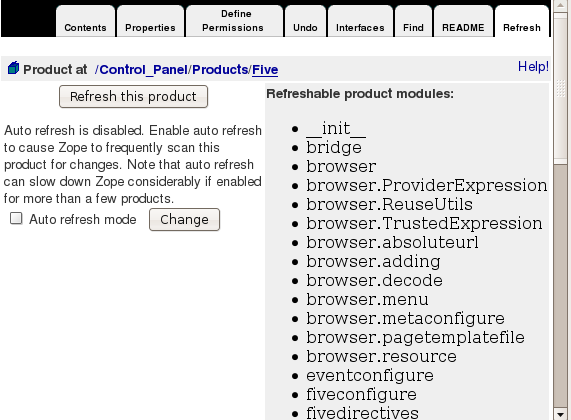 Si votre Zope écoute sur le port 8080 de localhost, rendez-vous à l’adresse suivante: http://localhost:8080/@@reload